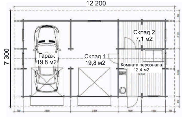 Гараж с хозблоком ГР-И13 (12,2 х 7,3)