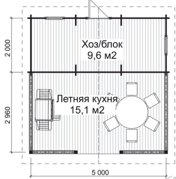 Летняя кухня ЛК-И8 5,0 х 5,0 с хозблоком