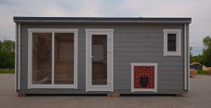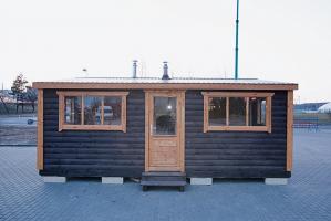 Баня изготавливается из профилированного бруса сечением 45 х 150 мм. Баня очень компактна, её размер всего 2,2 х 3,1 мет...