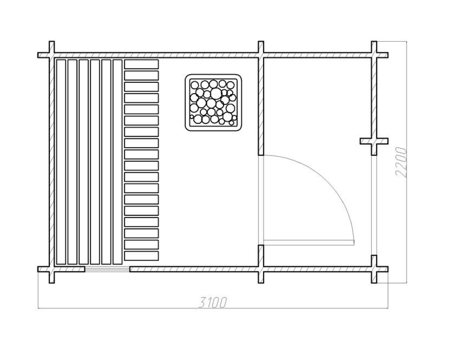 Комплектуется электрической каменкой. По желанию заказчика может устанавливаться дровяная печь-каменка.